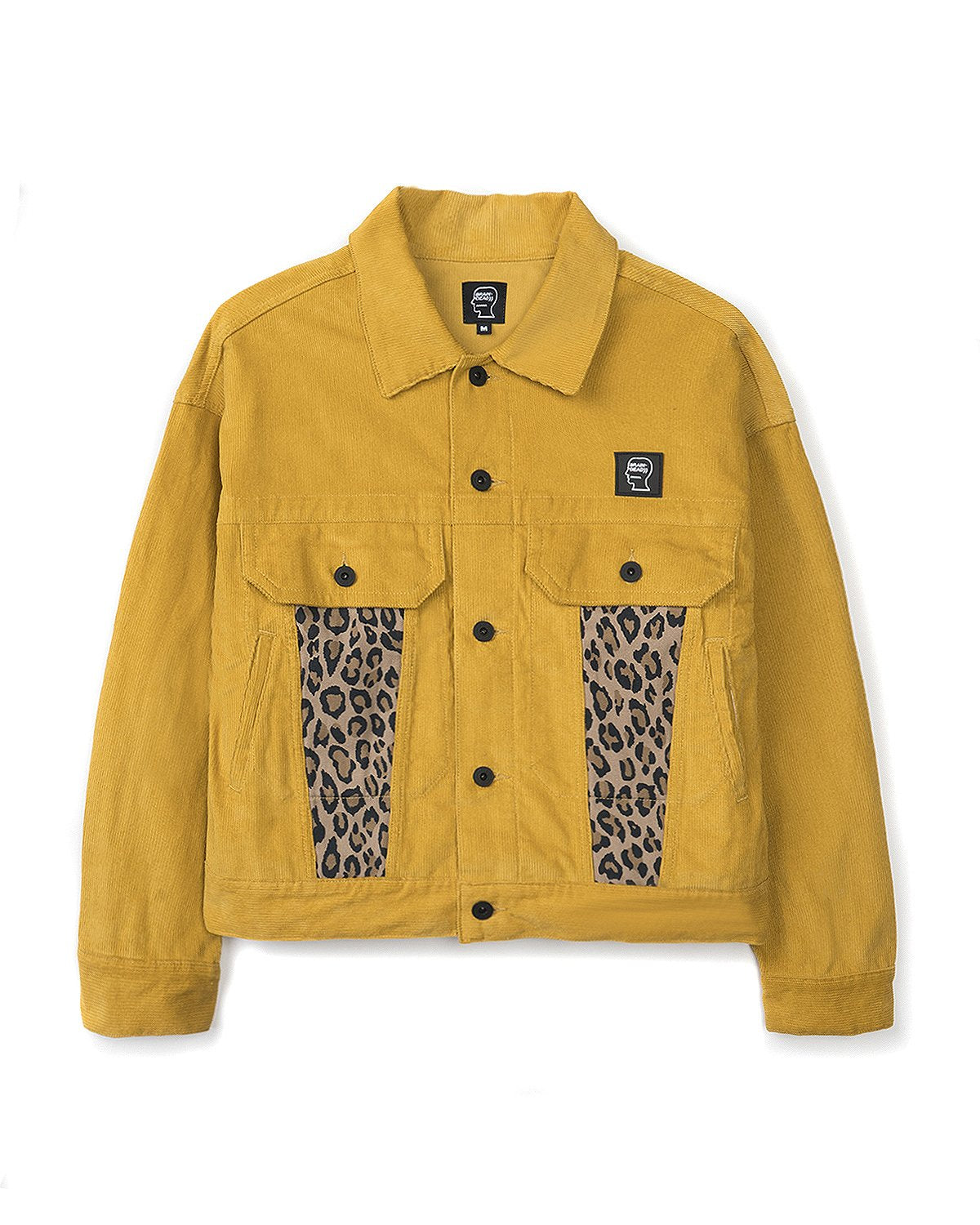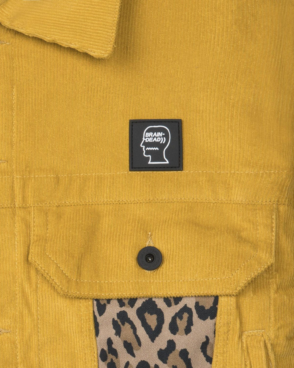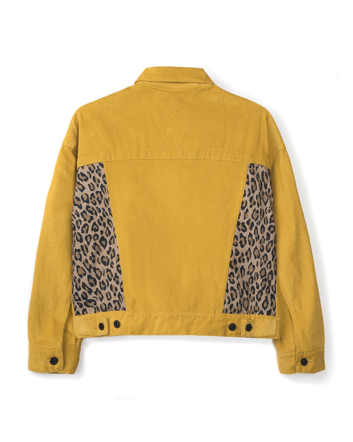 Corduroy Leopard Contrast Trucker Jacket - Mustard