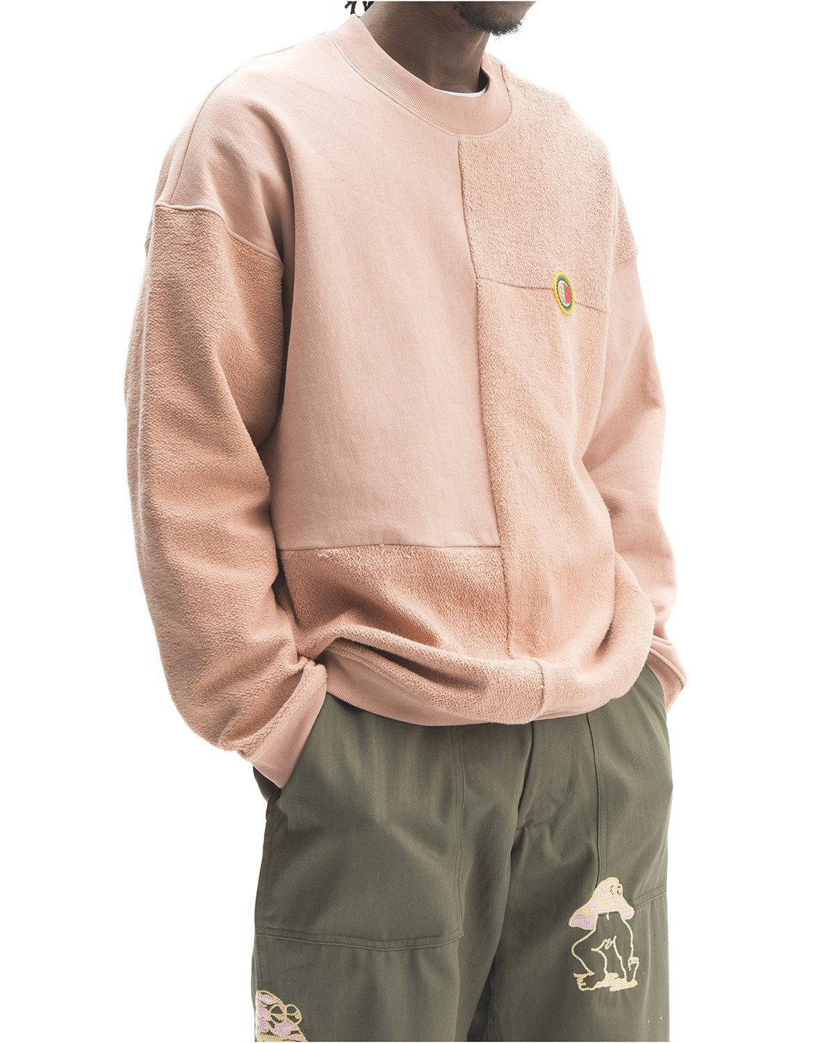 Global Works Split Panel Fleece & Terry Crewneck Sweatshirt - Peach