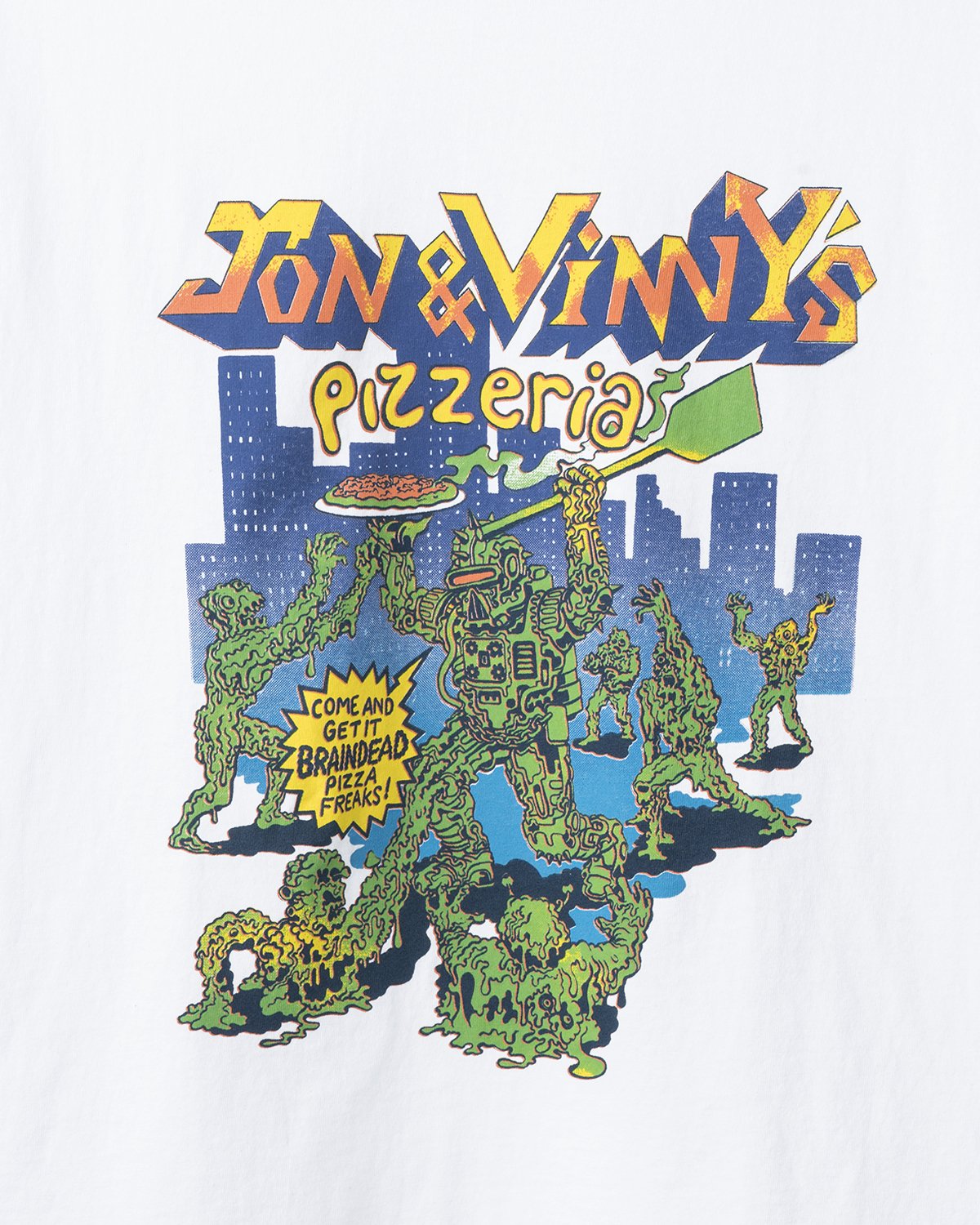Our classic Short-sleeve T-shirt. Custom Brain Dead for Jon & Vinny's Graphics Illustrated by Will Sweeney. Interior Brain Dead Label. Fits True to Size