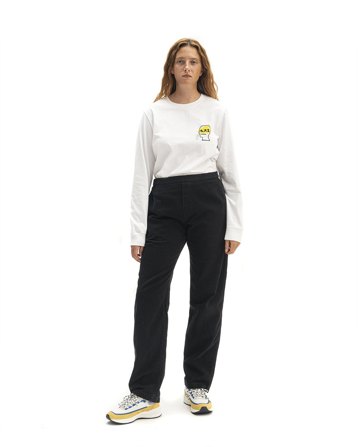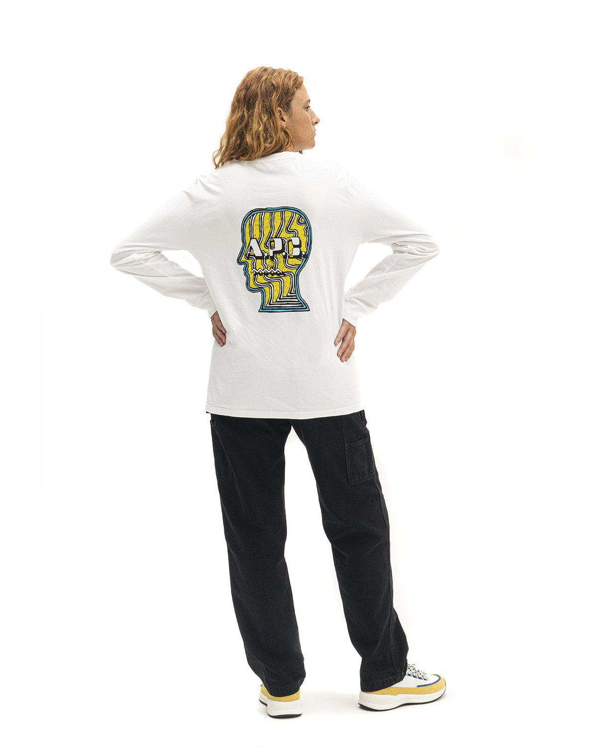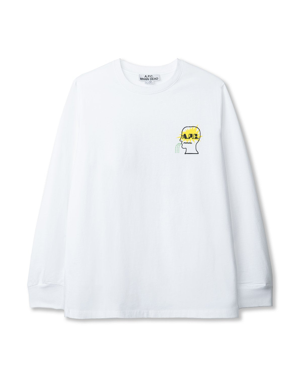 Brain Dead jersey. Thick material. Brain Dead interaction: silkscreened motif on front and back. Straight cut. Ribbed crew neckline. Long sleeves. Ribbed cuffs. Straight hem. Topstitched hem. The model is wearing a size M.