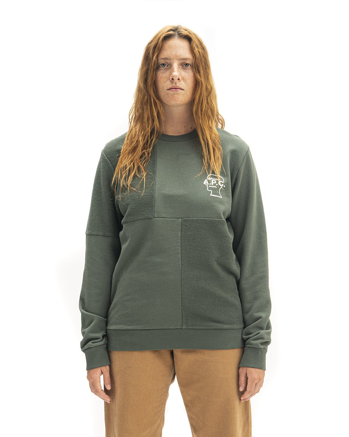 Men's Pony Long Sleeve Paneled Crewneck Sweatshirt A.P.C. x Brain Dead - Green/Grey