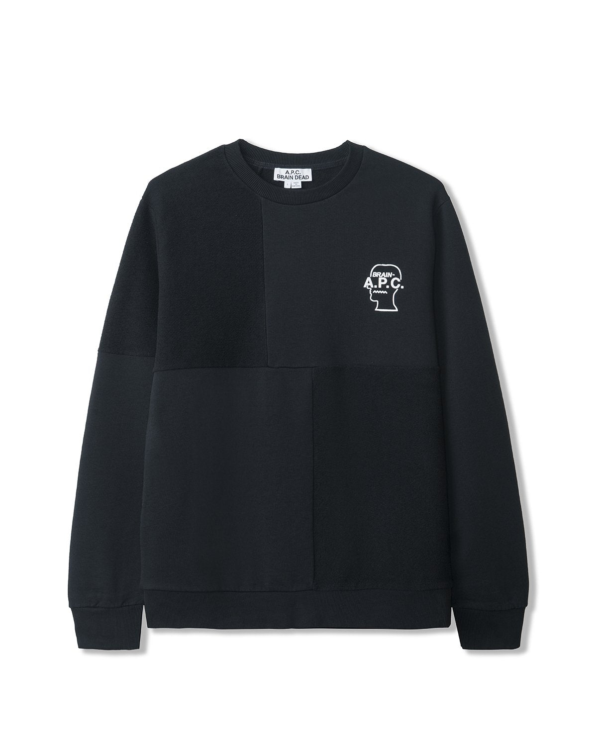 Men's Pony Long Sleeve Paneled Crewneck Sweatshirt A.P.C. x Brain Dead - Navy
