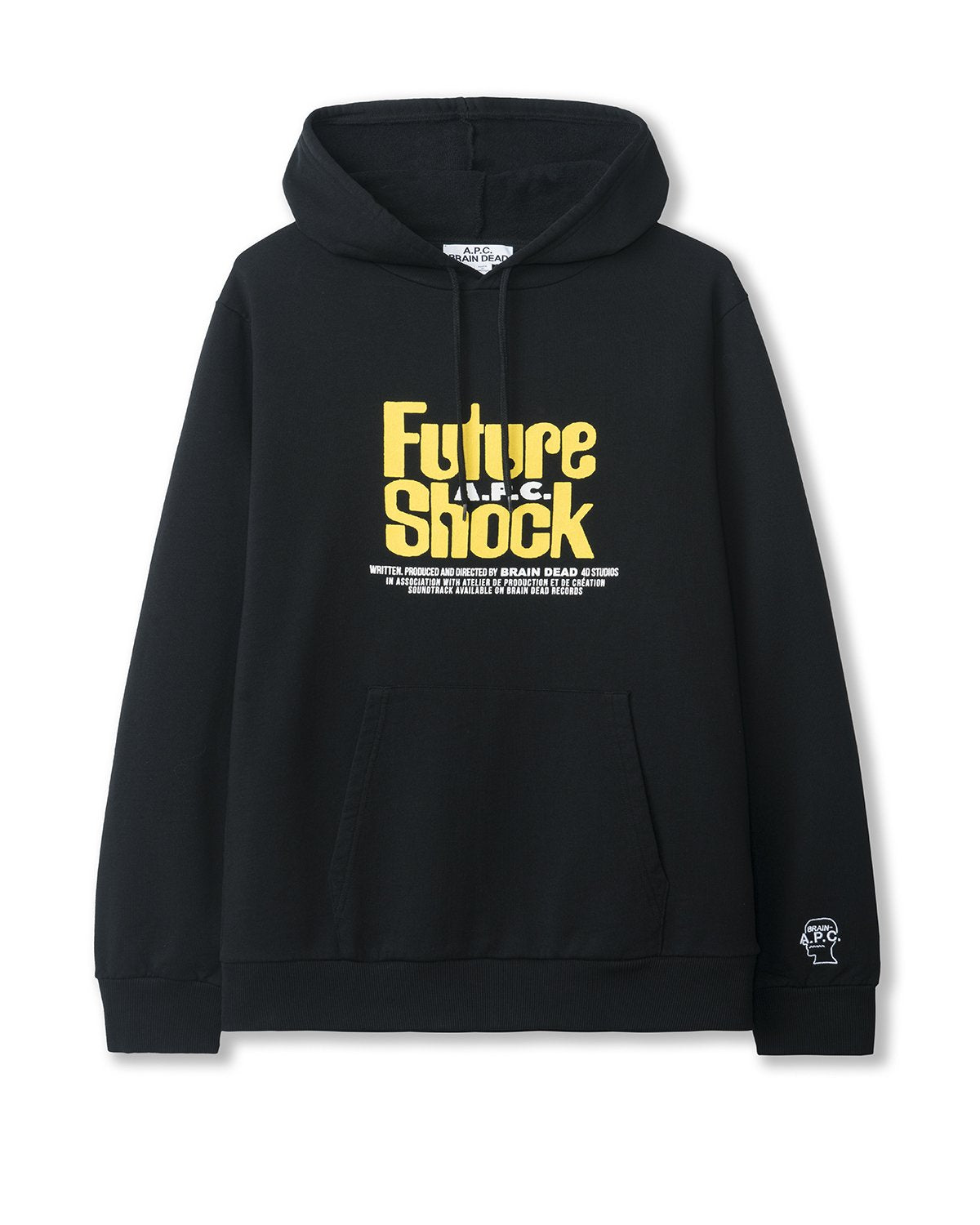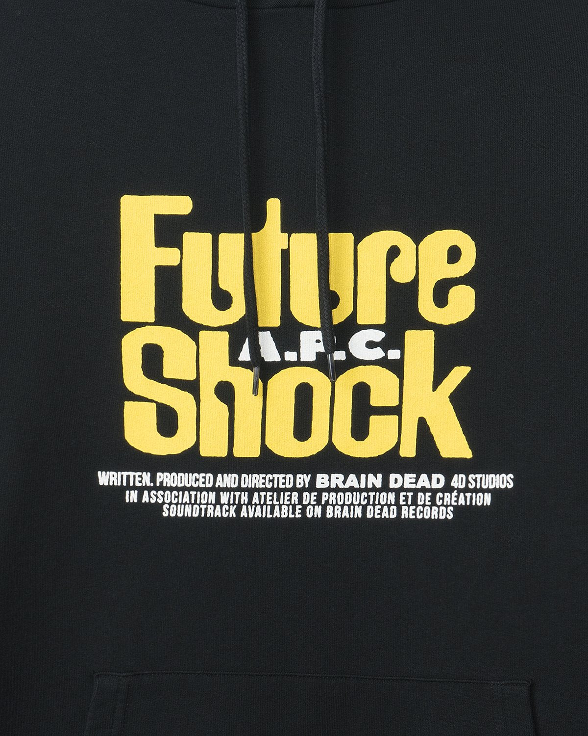 Brain Dead cotton fleece. Straight cut. Loose silhouette. Hood adjusts with round drawstring in knit cotton. Brain Dead interaction: silkscreened motif on chest. 'A.P.C. BRAIN DEAD' logo embroidered at wrist. Ribbed crew neckline. Long set-in sleeves. Ribbed cuffs. Straight hem. Wide ribbed bands at hem. The model is 187 cm tall and is wearing size M.