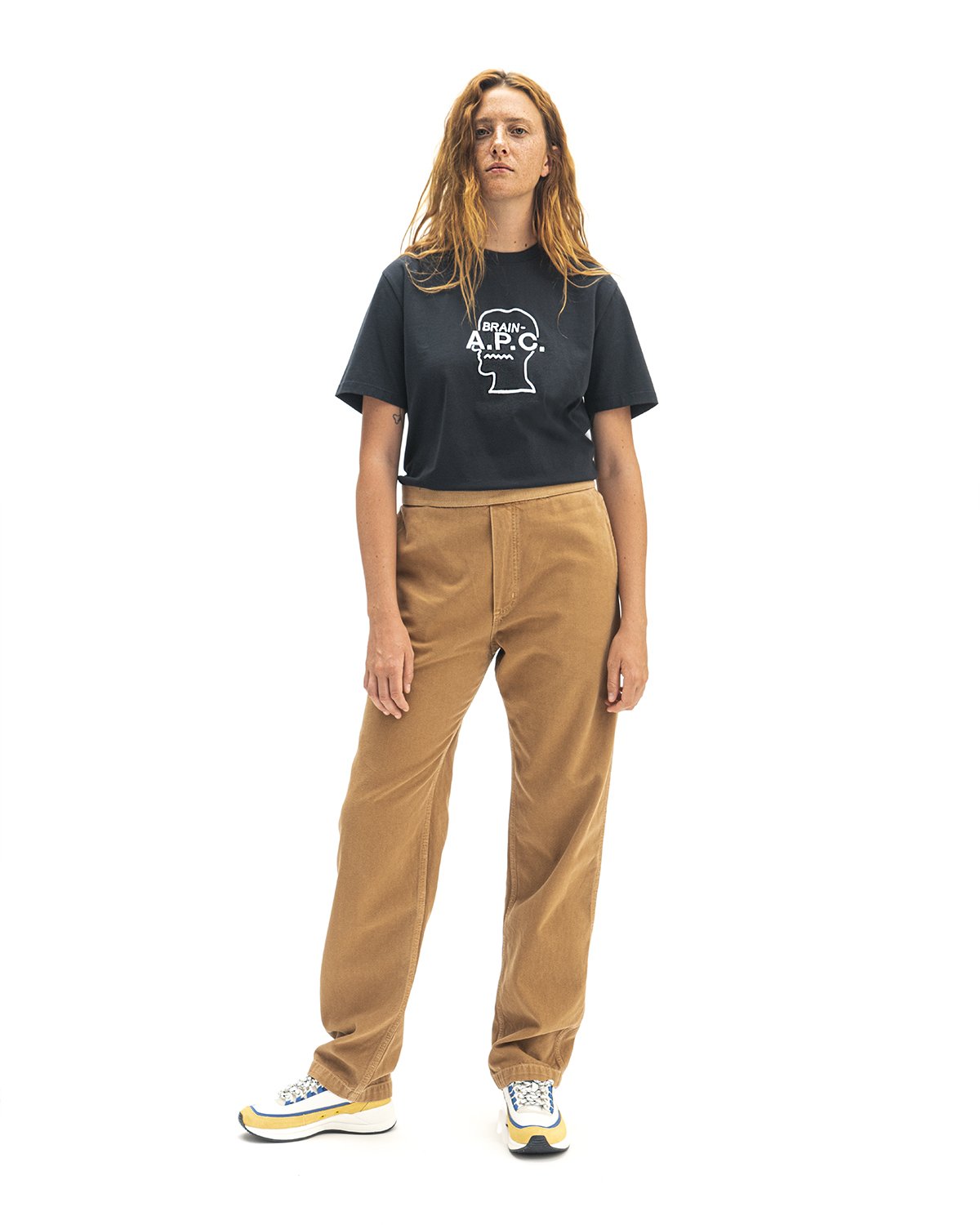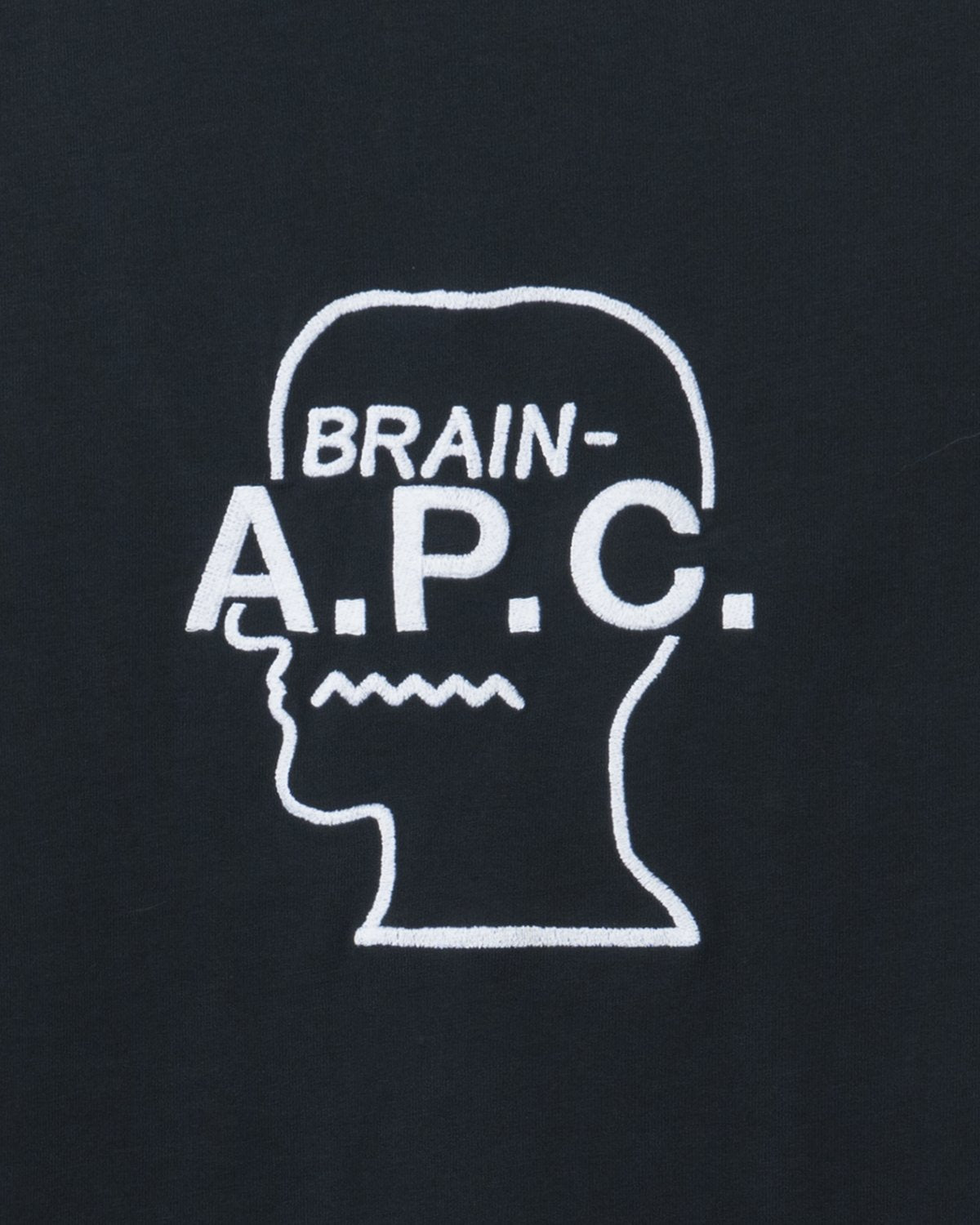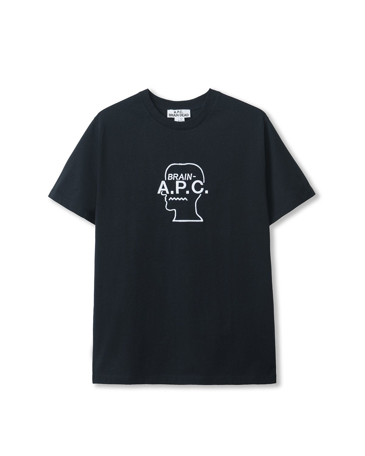 Brain Dead jersey. Thick material. Brain Dead interaction: contrasting embroidered 'A.P.C. Brain Dead' logo. Straight cut. Ribbed crew neckline. Short sleeves. Straight hem. Topstitched hem. The model is is wearing size M.