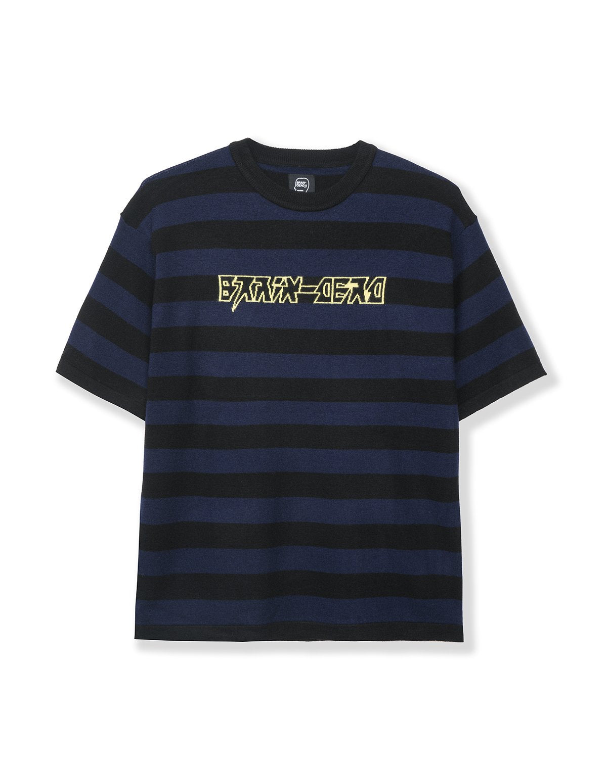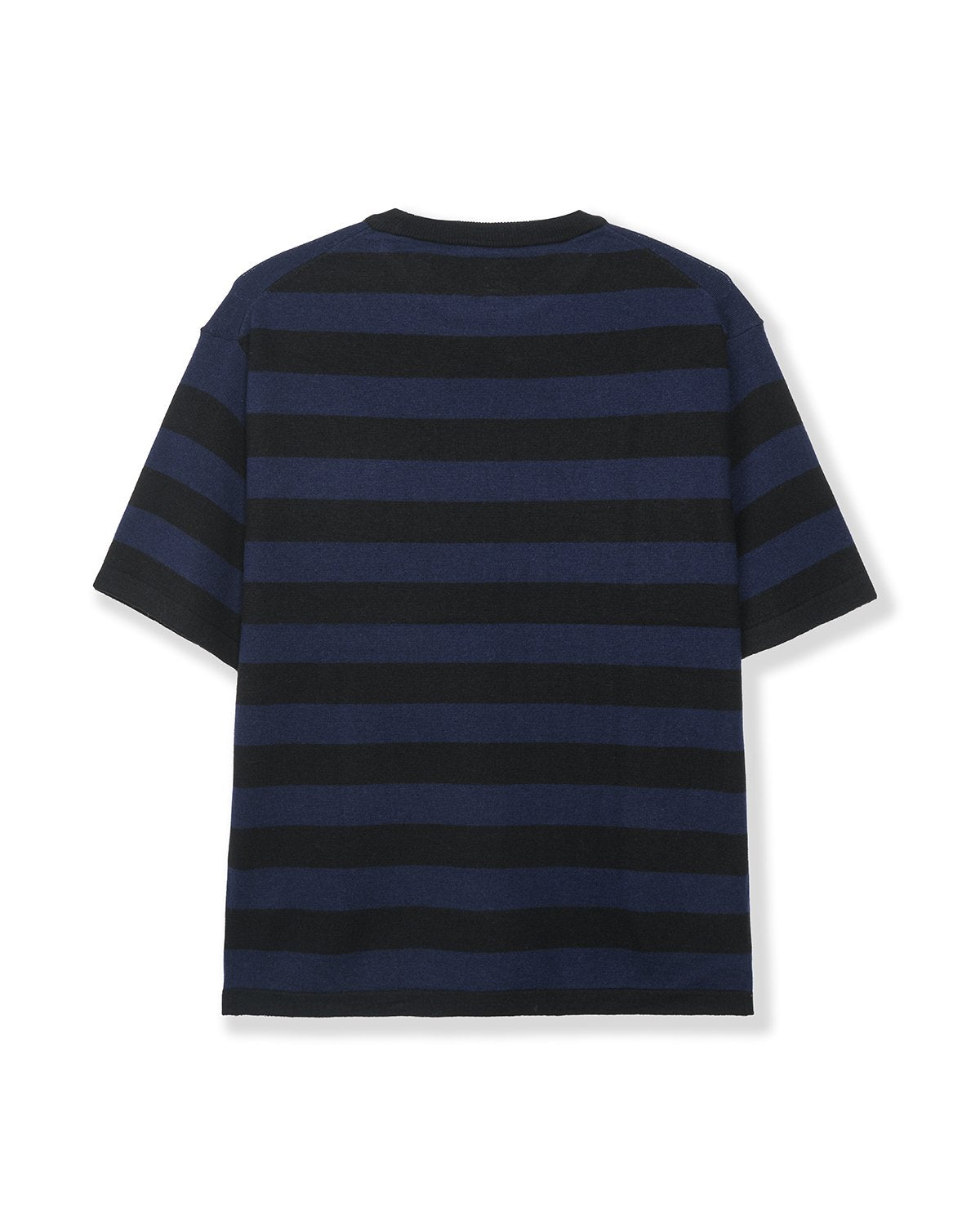 Merino Splatt Short Sleeve Stripe Sweater - Black/Blue