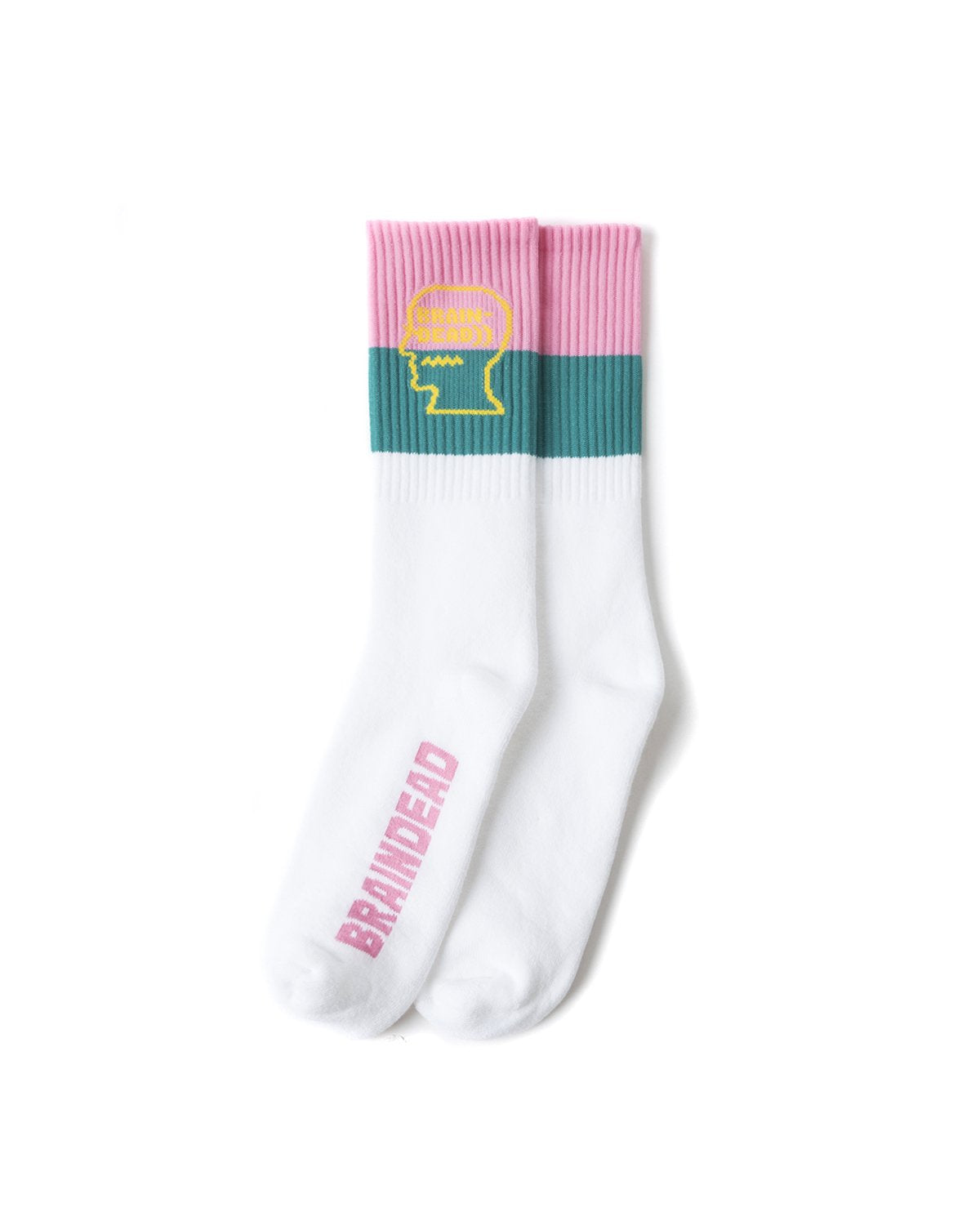 Striped Logo Head Socks - White/Teal/Pink