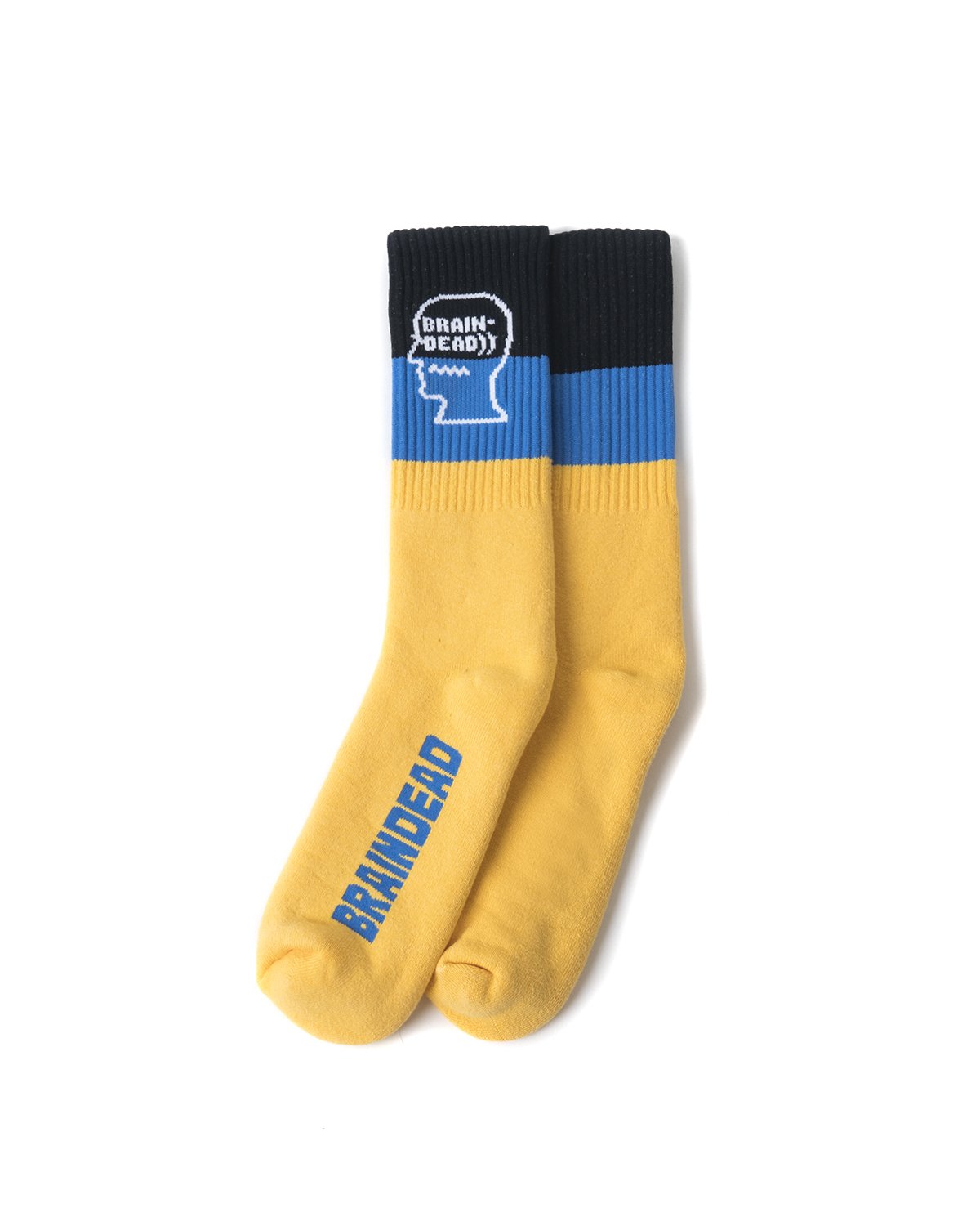 • Load image into Gallery viewer, Striped Logo Head Socks - Yellow/Blue/Black